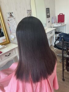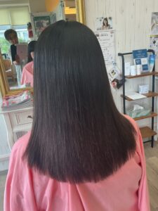 他店でのカラーと時々は自分でセルフカラーをされているのですが、アルカリカラーも美髪再生カラーで細い髪にはしっかりとケラチンを入れて毛髪強化剤で入れたケラチンが抜けないようにトリートメントで補います。