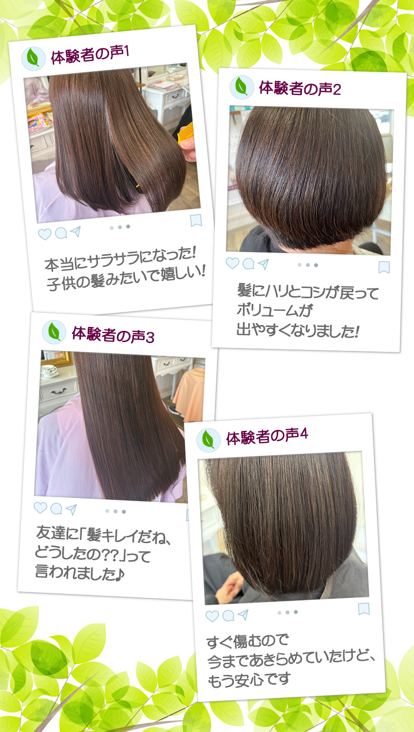 そしてあなたの髪質や状態、その時の施術に合わせ配合したトリートメントが浸透しやすくなり、繰り返していくたびに手触りも持続性も良くなりまるのです。